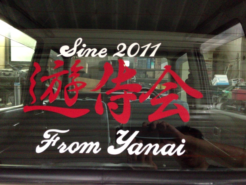 遊侍会ステッカーを車にピタッと貼りました。